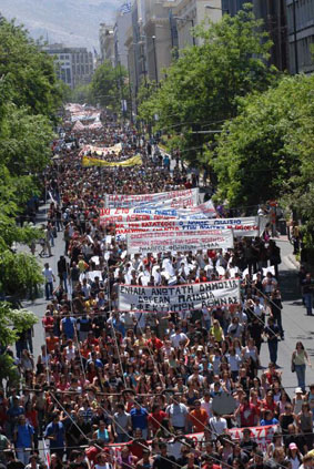 Curieusement, c’est avec le développement de la crise que ces événements prennent toute leur dimension. La quasi faillite de l’État grec, l’élaboration d’un programme d’austérité sous l’œil vigilant des pouvoirs financiers supranationaux, ont fait le lien de la crise sociale et politique avec celle de l’économie. En effet, l’aptitude des classes dirigeantes à appliquer ces programmes reste largement conditionnée par le maintien de la paix sociale. On sait que la marge est étroite en Grèce. De même, partout ailleurs en Europe, la réussite de l’austérité est assujettie au rapport de force entre exploités et exploiteurs, dans le cadre spécifique de chaque pays. L’ampleur de l’agitation sociale, l’instabilité politique, la difficulté à gouverner, font partie désormais des données de la crise.