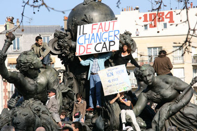 Face aux risques de développements possibles de cette dynamique, la classe politique française a donné alors quelques signes d’inquiétude. Elle craignait par-dessus tout une contagion. Même phénomène lorsque les travailleurs de Continental-France se sont déplacés par milliers en Allemagne pour manifester avec leurs camarades allemands sous les regards déconcertés des cadres syndicaux d’outre-Rhin, peu habitués aux débordements. Ou encore, lorsque la place de la Bourse à Paris a été occupée par des centaines d’ouvriers d’entreprises en lutte contre les licenciements. Le gouvernement a joué la prudence et l’hypocrisie. Alors que la présence policière est omniprésente dans la vie sociale en France, que la répression est la réponse à tout problème social, que l’amalgame est couramment pratiqué entre le discours sécuritaire et les propos anti-terroristes, le gouvernement a traité ces actions directes avec retenue, quitte à reporter la répression à plus tard [10]. Comme dira un haut responsable de la police, « les effets de la crise doivent être pris en compte dans les problèmes de sécurité […] Dans les périodes de crise, où les gens sont en difficulté sur le plan social, plus que jamais nous devons assurer leur sécurité au quotidien. Ils doivent être protégés [11]. »
