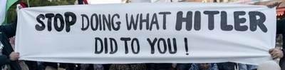 Quand je montre cette image lors d’une réunion de mon groupe d’amitiés franco-maghrébines, la première réaction est : la comparaison est juste. C’est le shoah business israélien, les juifs éternels victimes, qui ont imposé une vision du monde faussée et cette image montre que la comparaison est évidente. Israël se comporte comme les nazis.