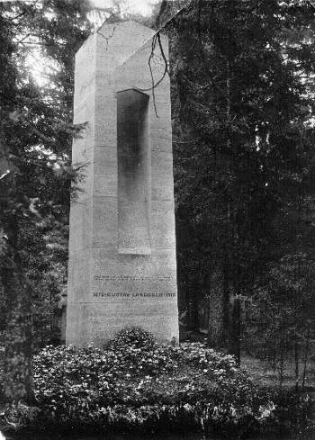 Début mai 1923, dans le cadre d’une cérémonie commémorative à laquelle participe également la fille de Charlotte (Landauer) Kronstein[6], l’urne contenant la dépouille de Gustav Landauer est inhumée dans un socle en béton spécialement construit à cet effet au cimetière Waldfriedhof de Munich. Ce monument, qui mesure 1,50 mètre de haut et 1,80 mètre de large, est entouré de pelouse et de verdure, et surmonté d’une plaque en chêne portant l’inscription : « Ici repose Gustav Landauer ».