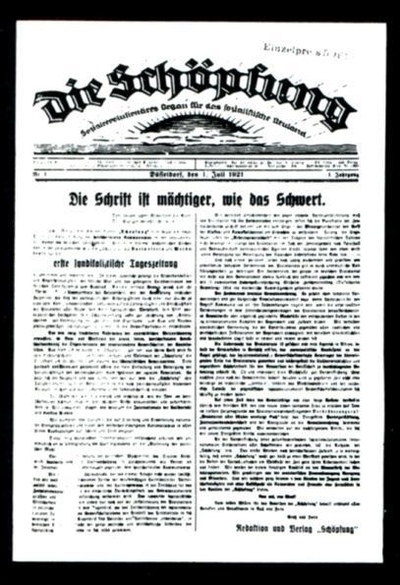 2. Un courant activiste, axé sur la mise en œuvre immédiate de la révolution sociale et négligeant les luttes syndicales quotidiennes, appelé « opposition » au sein de la FAUD. Ses porte-parole provenaient principalement du cercle de la « Fédération des anarchistes communistes allemands » (FKAD)(18) à Düsseldorf et Berlin. Les rédacteurs du quotidien Die Schöpfung (La Création), publié à Düsseldorf à partir de juillet 1920, Heinrich Drewes et Fritz Köster, se firent les porte-parole de ce courant.