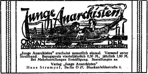 L’uniforme des groupes tels que le Reichsbanner et le Rotfrontkämpferbund d’un côté, la SA et la SS de l’autre, suscita une vive opposition au sein de la FAUD, car « cela conduirait à une militarisation de notre jeunesse, réduisant à néant nos années de lutte contre la militarisation de la jeunesse ».(117)