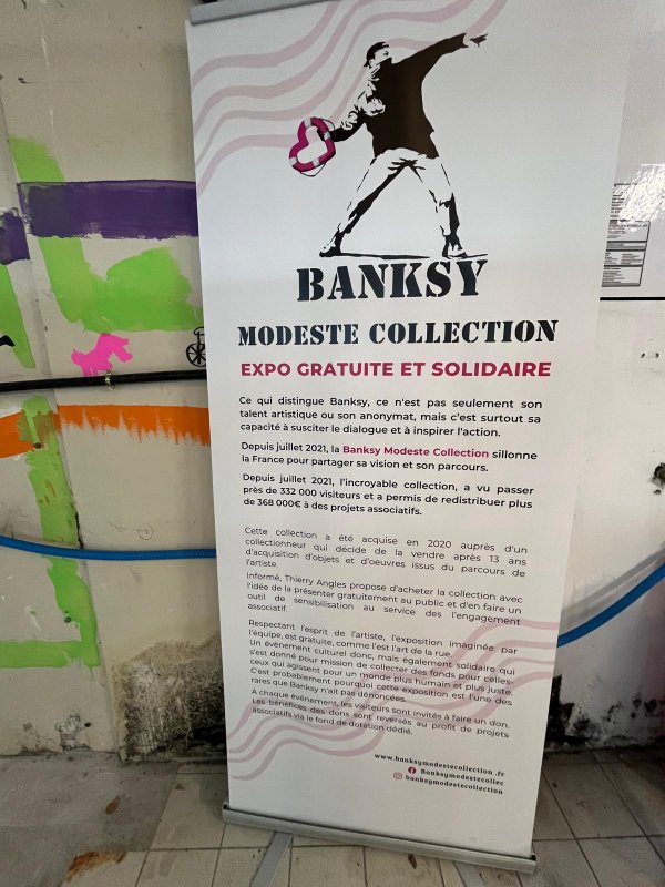 Nous allons visiter l’exposition Bansky qui se tient à Villefranche de Lauragais du 4 au 19 octobre 2025. C’est une très belle exposition gratuite de reproductions de ces œuvres, et c’est une exposition solidaire où les dons des visiteurs sont redistribués à des associations locales. Voici quelques images pour illustrer notre visite :